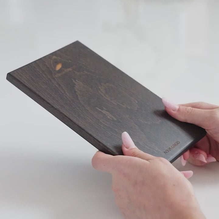 Aqua Gray – Is a water-based finish made with a rich organic vegetable oil color agent. A stain wash with a little grey, blue, anthracite and discreet purple hues to it warmed up by the natural wood undertones. The standard 10-step finishing process where the wood is saturated with stain, allowed to naturally dry and then it is sanded down and restrained several times until optimal consistency and wood penetration is obtained.