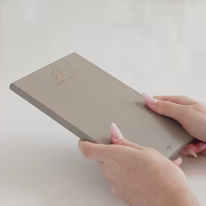 This is a 5″ x 8″ Finish Sample, the most accurate representation of how this stain/paint will look on the furniture. Ash is a water-based multi-step finish where the wood grain is complemented by the gray and beige tone. High degree of variation.
