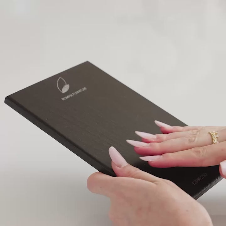 This is a 5″ x 8″ Finish Sample, the most accurate representation of how this stain/paint will look on the furniture. Water-based dark brown stain with an anthracite hue. Multi-step finish with a moderate degree of variation.